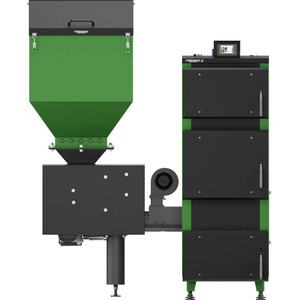 БрендHeiztechnik Мощность25 кВт Материалсталь 5 мм Глубина топки480 мм Топливоуголь, пеллеты Давление системы2 бар